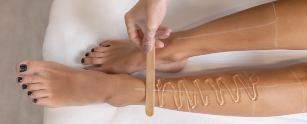 Восковая депиляция проводится иначе: воск распределяют по росту волос, а удаляют — против.