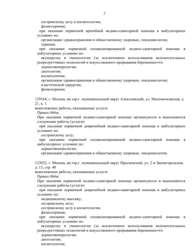 Клиника осуществляет виды медицинской помощи, предусмотренные лицензией на осуществление медицинской деятельности. Клиника не оказывает медицинские услуги, требующие госпитализации в стационар.