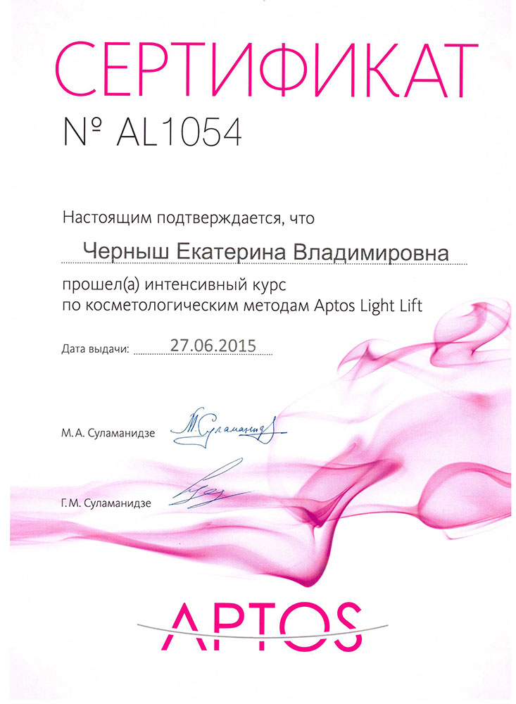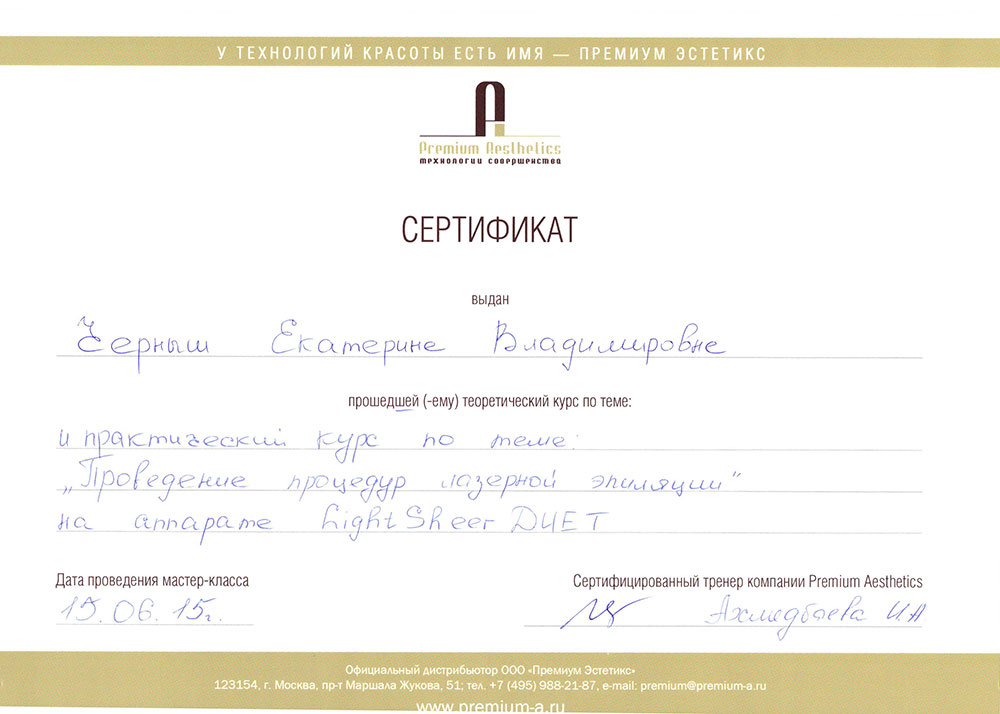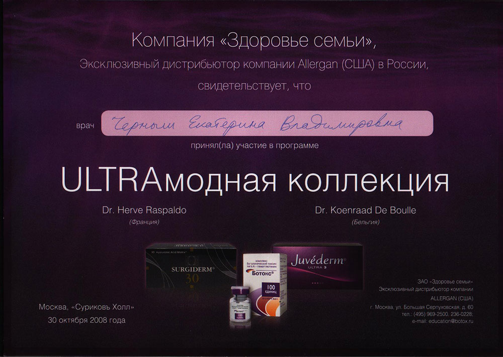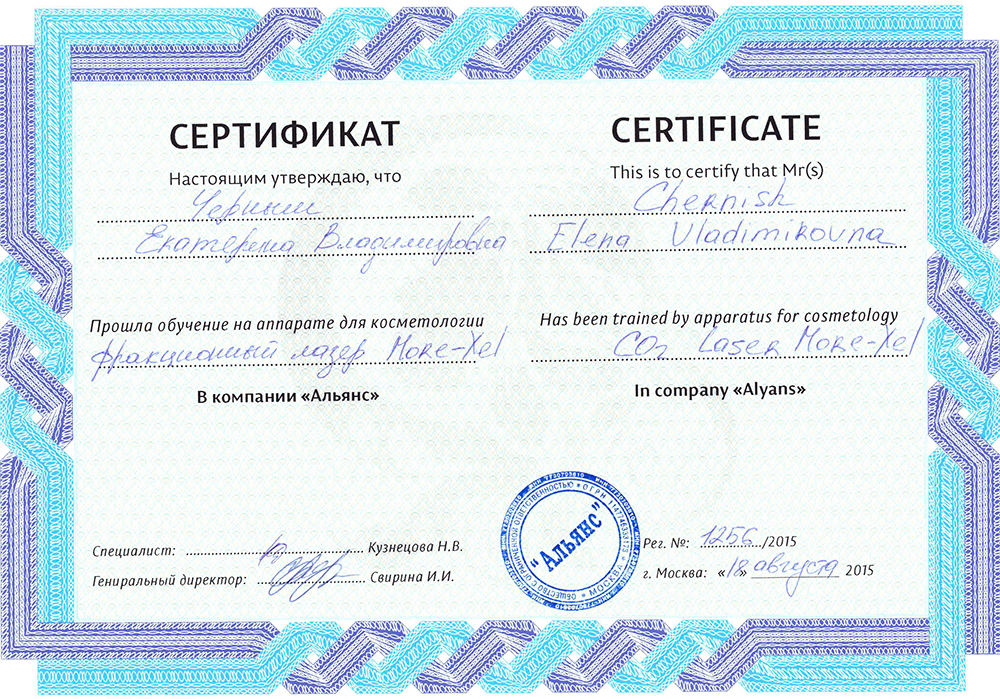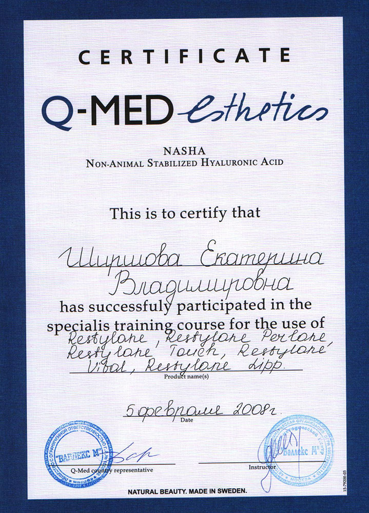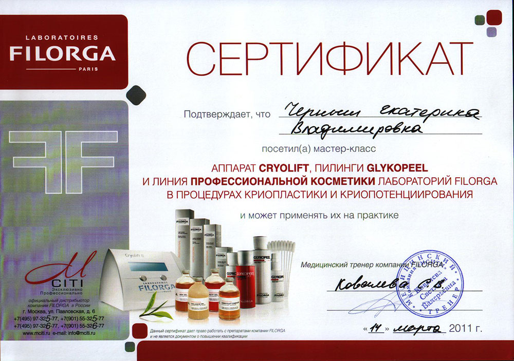 - В 2011 г. прослушала III Международный курс по дермоскопии в рамках Х Международного конгресса по эстетической медицине им. Евгения Лапутина.
