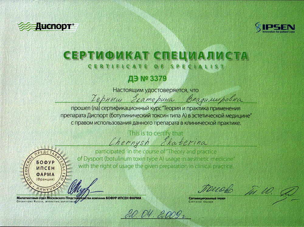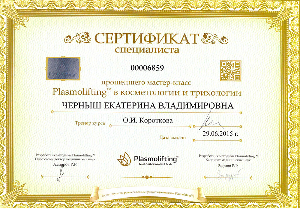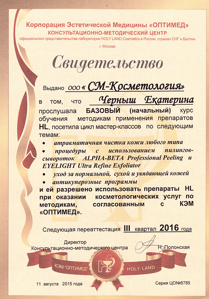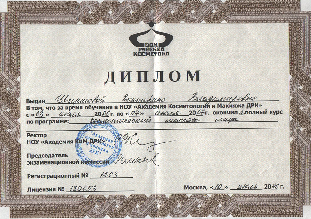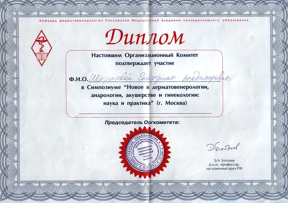 Кафедра РГМУ. Получила сертификат специалиста дерматовенеролога.