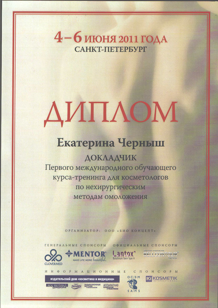 - В 2011 г. докладчик Первого Международного обучающего курса-тренинга для косметологов по нехирургическим методам омоложения (Санкт-Петербург).
