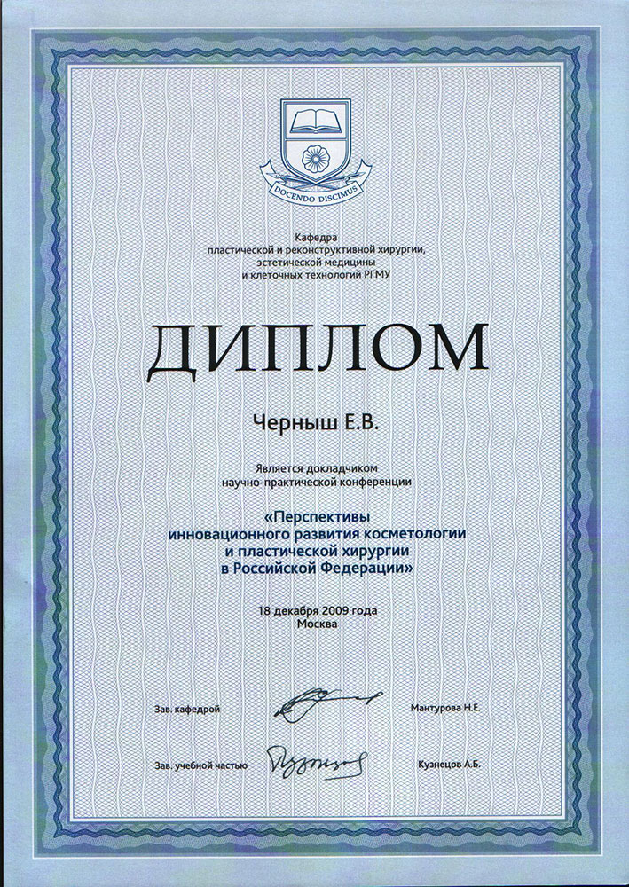 - В 2009 г. докладчик на VIII Международном симпозиуме по эстетической медицине.