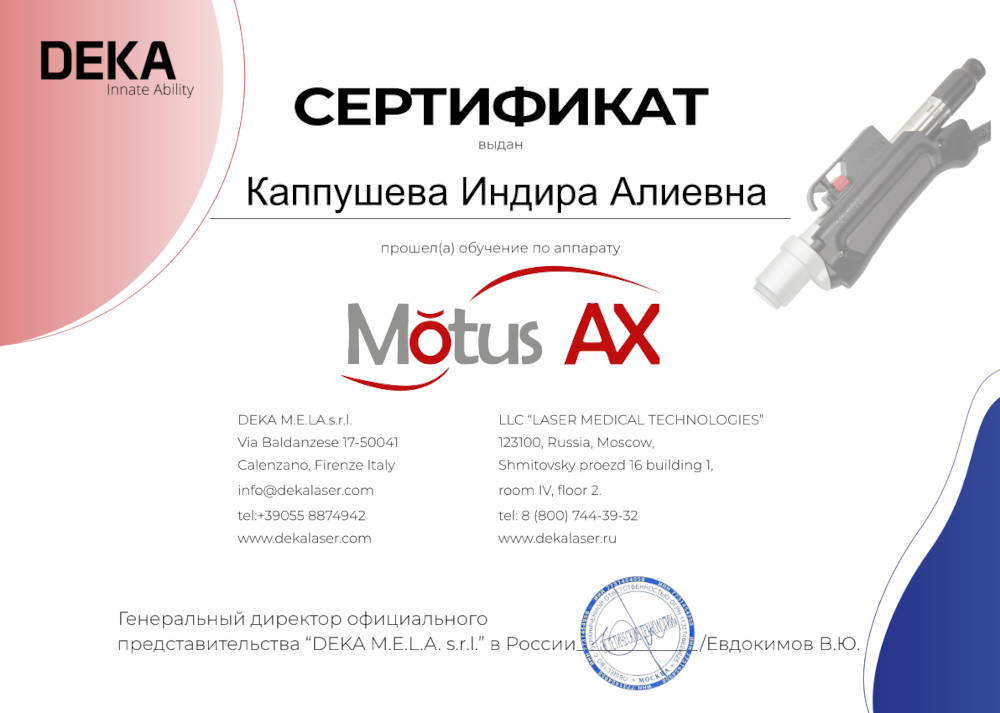 - лазерную эпиляцию на аппарате Deka Motus AX (Moveo);