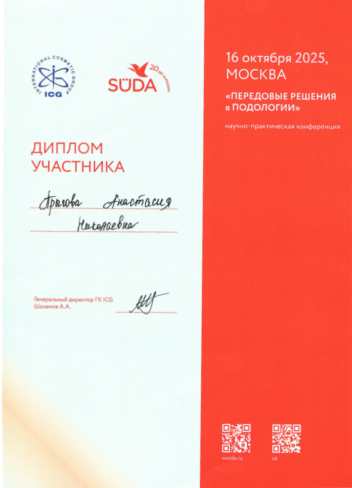 Анастасия Николаевна - участник Научно-Практической конференции «Передовые Решения в Подологии».